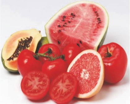लाइकोपीन टमाटर, अंगूर और तरबूज जैसे फलों और सब्जियों को लाल रंग देने वाला एंटी-ऑक्सिडेंट हैं जो हमें प्रोस्टेट कैंसर और दिल की बीमारियों से बचाता है। इसके प्रमुख स्त्रोत टमाटर, पपीता, अमरूद, अंगूर, संतरा और तरबूज आदि।