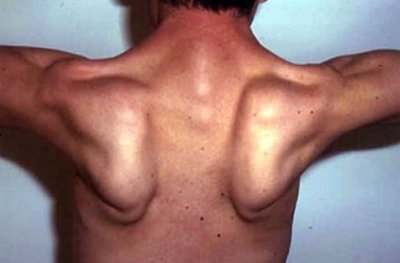 5. फेशियोस्केपूलो हमरल मस्कूलर डिस्ट्राफी (Fascio Scapulo Humeral Muscular Dystrophy) : इस विकार में चेहरे (Face),कंधों (Scapula) व बांहों (Humerus) की मांसपेशियों पर प्रभाव पड़ता है। यह प्रकार किशोरावस्था में शुरू होकर प्रारंभिक वयस्कावस्था में मिलता है। यह धीरे-धीरे बढ़ता है। इसके कारण पैदल चलने, चबाने, निगलने व बोलने में कष्ट हो सकता है। 50% रुग्णों को जीवनभर इसकी तकलीफ होती है, पर अधिकांश रुग्ण सामान्य जीवन जी सकते हैं।